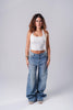 It comes in one color: cloud washed denim